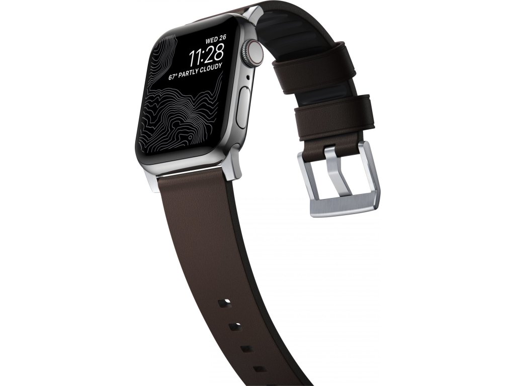 Kožený pásek / řemínek pro Apple Watch 44mm / 45mm / 46mm / 49mm - Nomad, Active Pro Brown Silver
