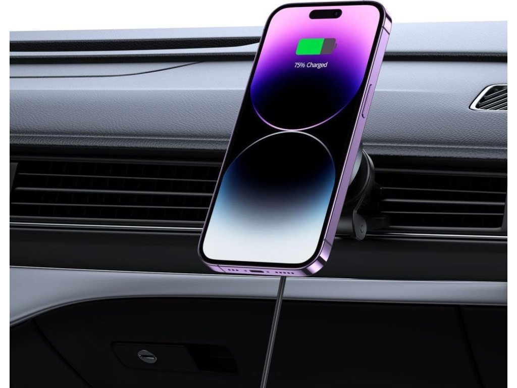 Magnetický držák mobilu do auta Tech-Protect MM15W-V5 je přímo určený pro iPhony s podporou MagSafe. Díky silným magnetům integrovaným v držáku bezpečně přichytíte telefon za jízdy autem a budete na něj mít nerušený výhled.