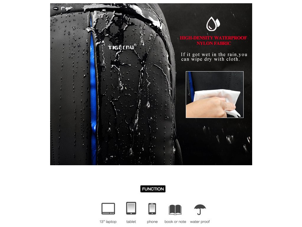 Batoh na notebook Tigernu nabízí dostatek prostoru na transport vašeho pracovního zařízení s potřebným příslušenstvím. Šikovně řešený prostor slouží k bezpečnému uložení počítače do zadní části, kde je uchycen ještě popruhem na suchý zip. K němu vměstnáte například i tablet, sešity a další příslušenství jako třeba powerbanky, nabíječky nebo kabely. Přední kapsa je určena pro malé předměty, které rychle z batohu vyndáte. Obsahuje i síťovanou přihrádku.