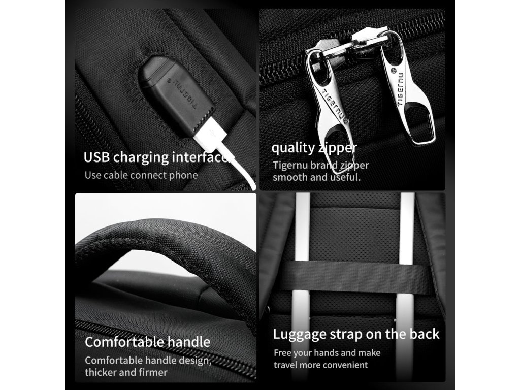 Městský batoh Tigernu T-B3585 se bude hodit do jakéhokoliv prostředí a na jakoukoliv příležitost. Uložíte do jeho útrob notebook s úhlopříčkou displeje až 15,6 palců. Také dobře odolává zmoknutí a na jeho boku je USB port pro nabíjení vašeho telefonu nebo tabletu. V neposlední řadě je přizpůsoben pro zabezpečení prostřednictvím TSA zámku.