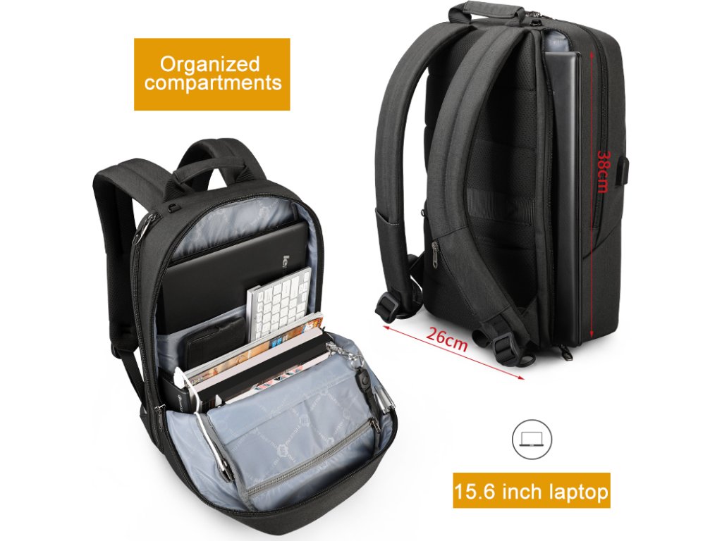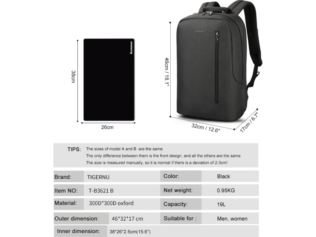 Městský batoh Tigernu T-B3621B má vše, co budete od středního příručního zavazadla potřebovat. Vložíte do něj notebook o velikosti úhlopříčky až 15,6 palců, je odolný vůči zmoknutí, nabídne praktický USB nabíjecí port a díky ergonomickému polstrování na zádech je velmi pohodlný i na delší nošení.