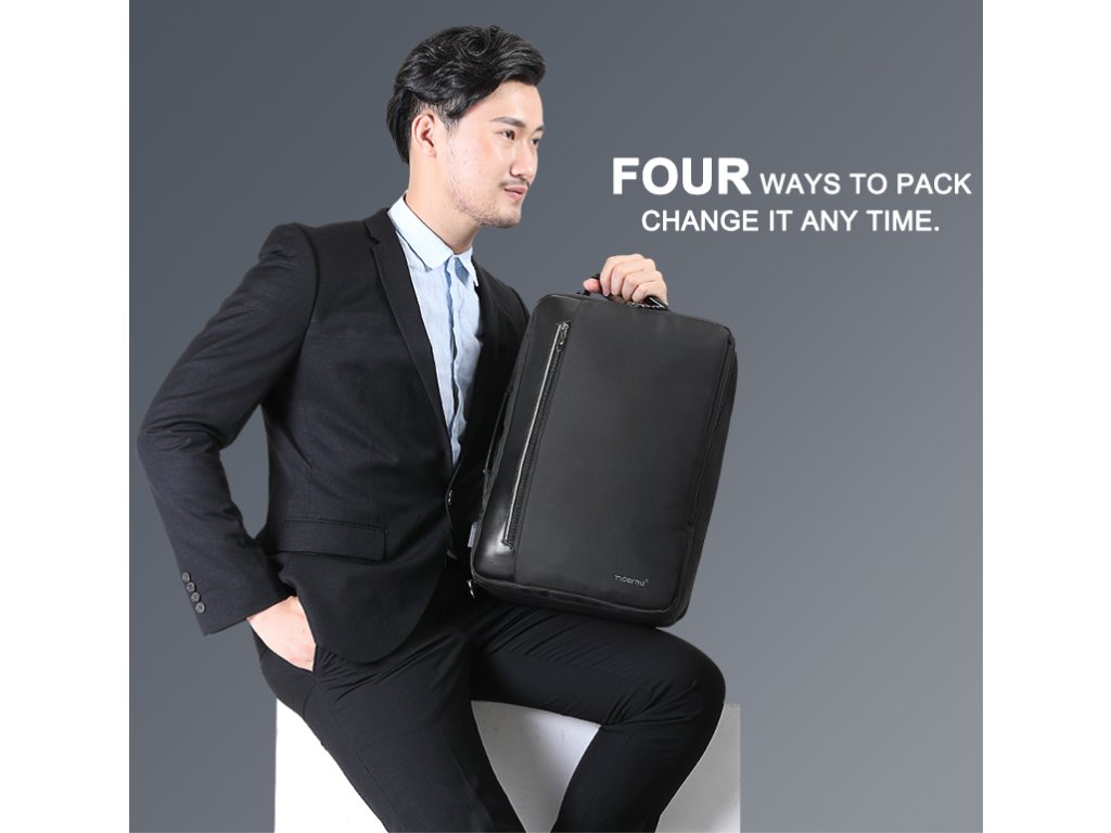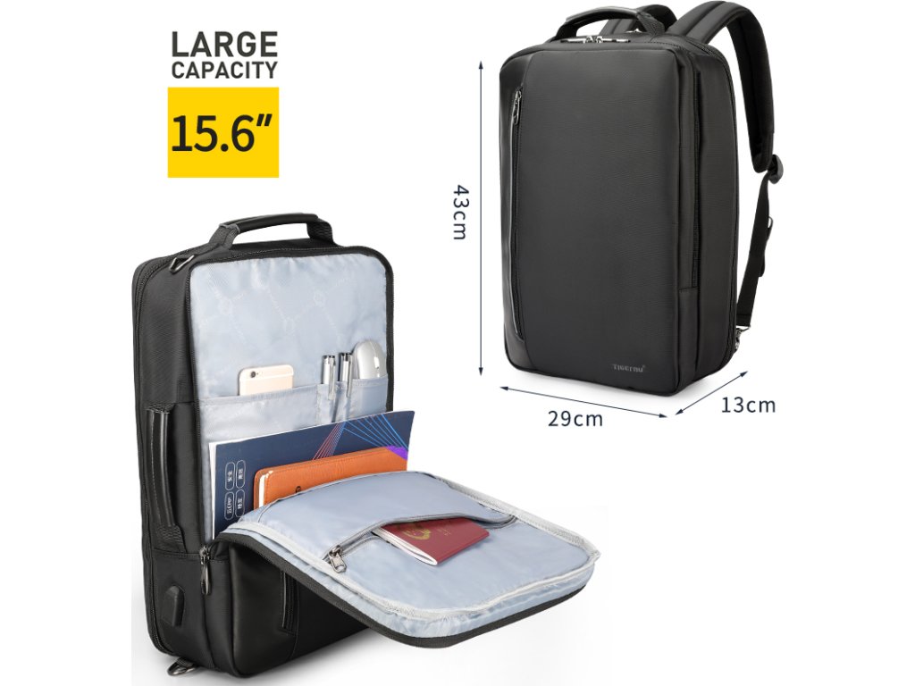 Městský batoh Tigernu T-3639 v sobě spojuje eleganci příruční tašky a praktický batoh na záda. Umístíte do něj počítač až do úhlopříčky displeje 15,6 palců a k němu se vejde mnoho příslušenství. Potěší také odolnost proti zmoknutí a nabíjecí USB port.