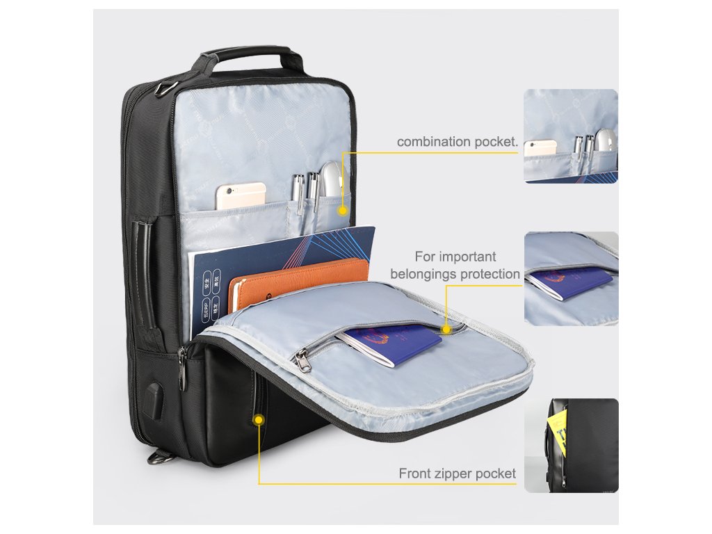Nejlepší batoh na notebook musí mít i další vychytávky a tento nabídne kvalitní dvojité jezdce na zipech u hlavních kapes. Díky tomu je zabezpečíte i TSA zámkem. Ucho na horní straně umožňuje rychlé přenášení na krátké vzdálenosti a je k dispozici pro použití ve stylu batohu i brašny.