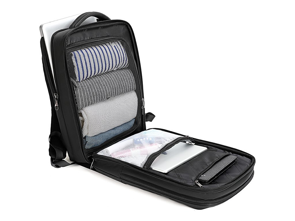 Batoh na notebook Tigernu je skvělou možností, jak si uložit na cesty všechny své věci. Počítač je bezpečně umístěn do zadní části batohu, takže ho nepoškrábe ostatní příslušenství. Před touto velkou kapsou je další menší, a ta pojme spoustu středních doplňků nebo třeba i několik kusů vašeho oblečení. K tomu máte k dispozici síťované přihrádky pro uložení třeba tabletu, psacích potřeb nebo hygieny. Vpředu je pak ještě další kapsa. Ideální pro malé doplňky jako jsou například kabely. Před všemi kapsami je ale ještě malá přihrádka na zip. Poslouží dobře na cestovní doklady a všechny věci, které chcete mít hned a okamžitě na dosah.