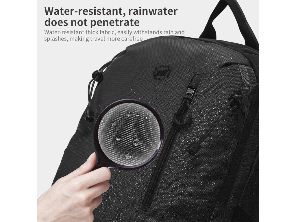 Batoh pro notebook je pokryt voděodolnou tkaninou, která odpuzuje vodu a ani silnější déšť ho nerozhází. Všechny věci zůstanou v útrobách suché. A to ať už ho budete nosit na zádech nebo za horní poutko, které vydrží i pořádný náklad.