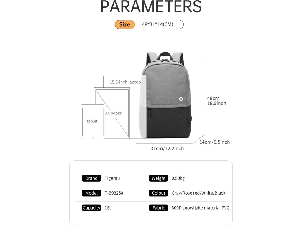 Městský batoh Tigernu T-B9325 vypadá na první pohled velmi minimalisticky a můžete ho využívat i na cesty nebo do práce. Pojme dokonce i velký 15,6palcový notebook a další doplňky. Navíc je voděodolný, lehký a vypadá skvěle.