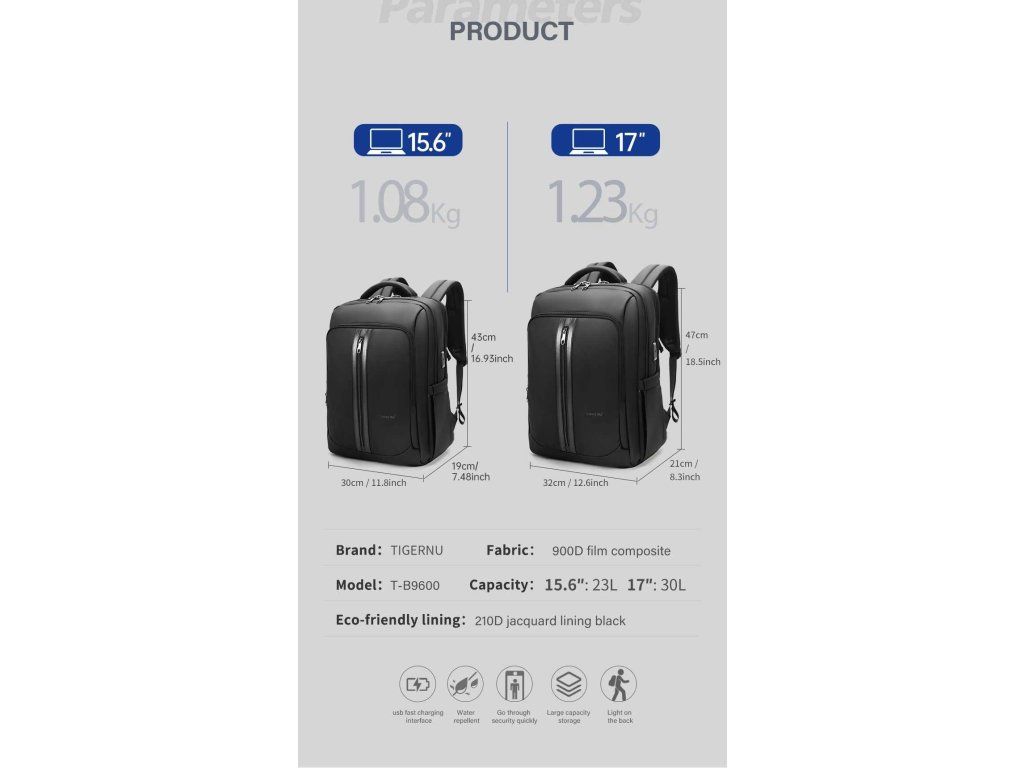 Městský batoh Tigernu T-B9600 nabídne množství prostoru pro uložení vašich cenností a místo pro až 15.6palcový notebook. Tři velké kapsy se postarají o uložení všech věcí a měkké polstrování na zádech a popruzích zase o pohodlné nošení.