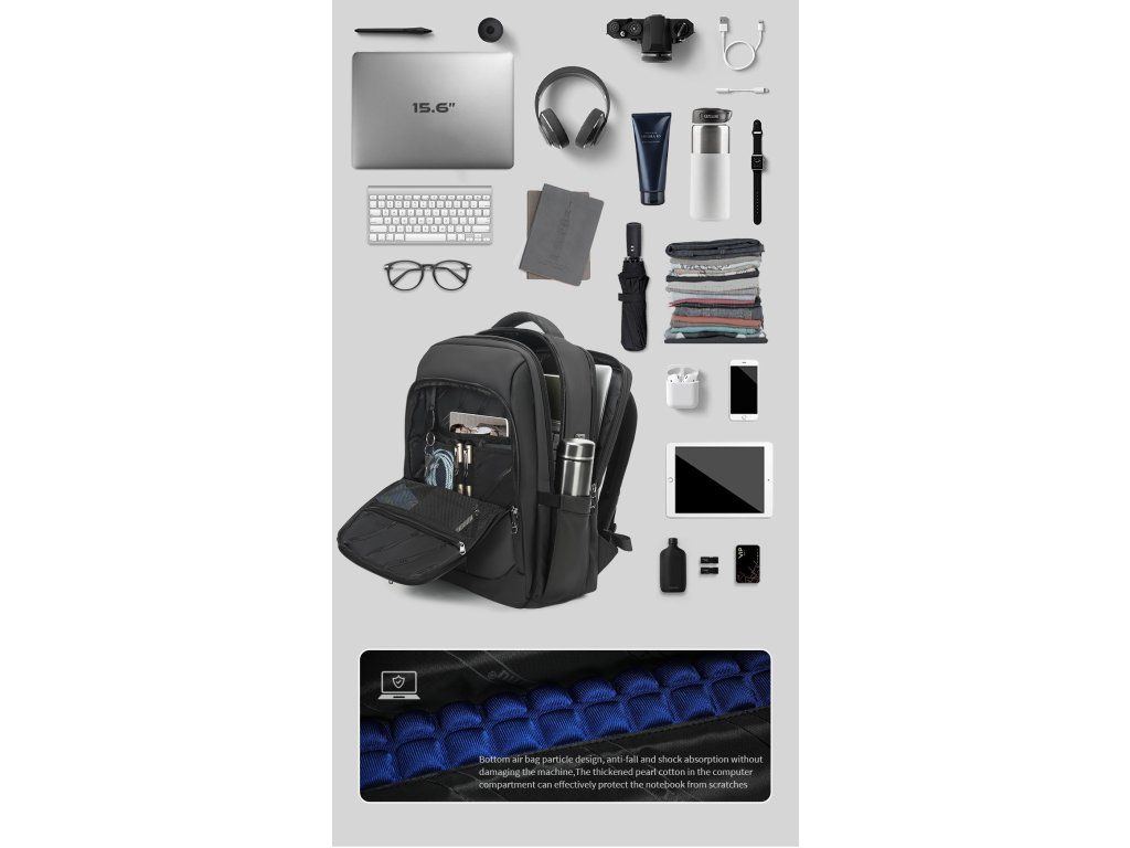 Batoh na notebook Tigernu nabízí dostatek prostoru na transport vašeho pracovního zařízení s potřebným příslušenstvím. Šikovně řešený prostor slouží k bezpečnému uložení počítače do zadní části. K němu vměstnáte například i tablet, sešity a další příslušenství jako třeba powerbanky, nabíječky nebo kabely. Přední kapsa je určena pro malé předměty, které rychle z batohu vyndáte. Obsahuje i síťovanou přihrádku.