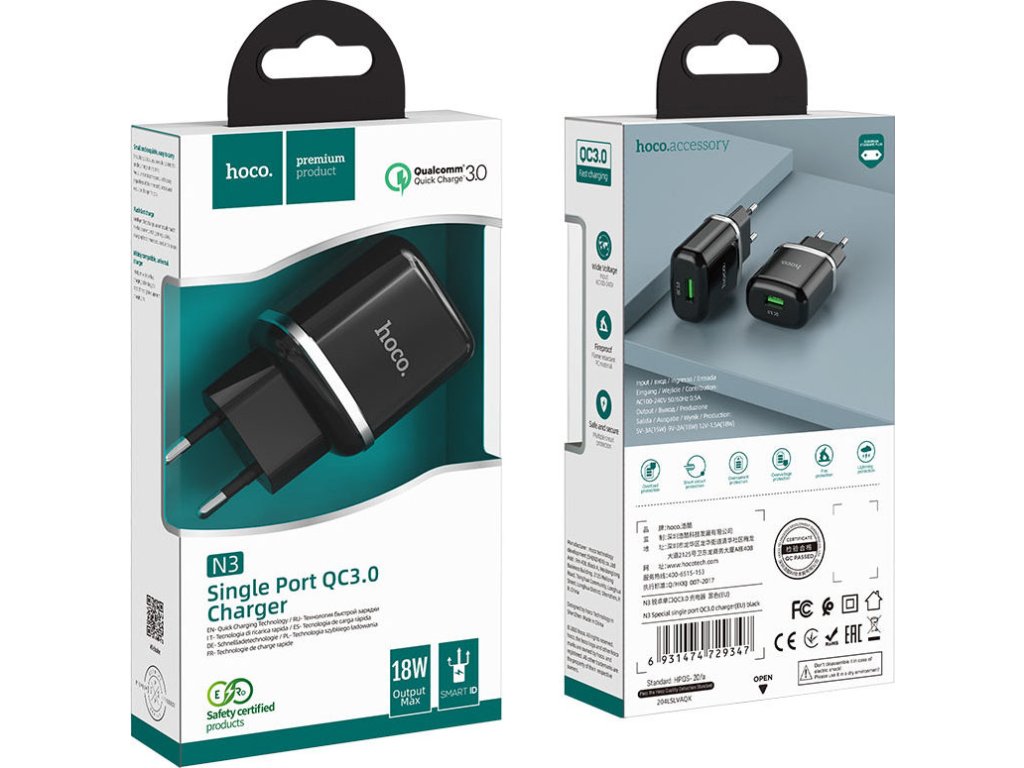 Nabíjecí USB adaptér Hoco N3 podporuje rychlé nabíjení a jeho kompaktní rozměry oceníte jak na cestách, tak doma. Díky podpoře Quick Charge 3.0 nabijete rychle všechna podporovaná zařízení.