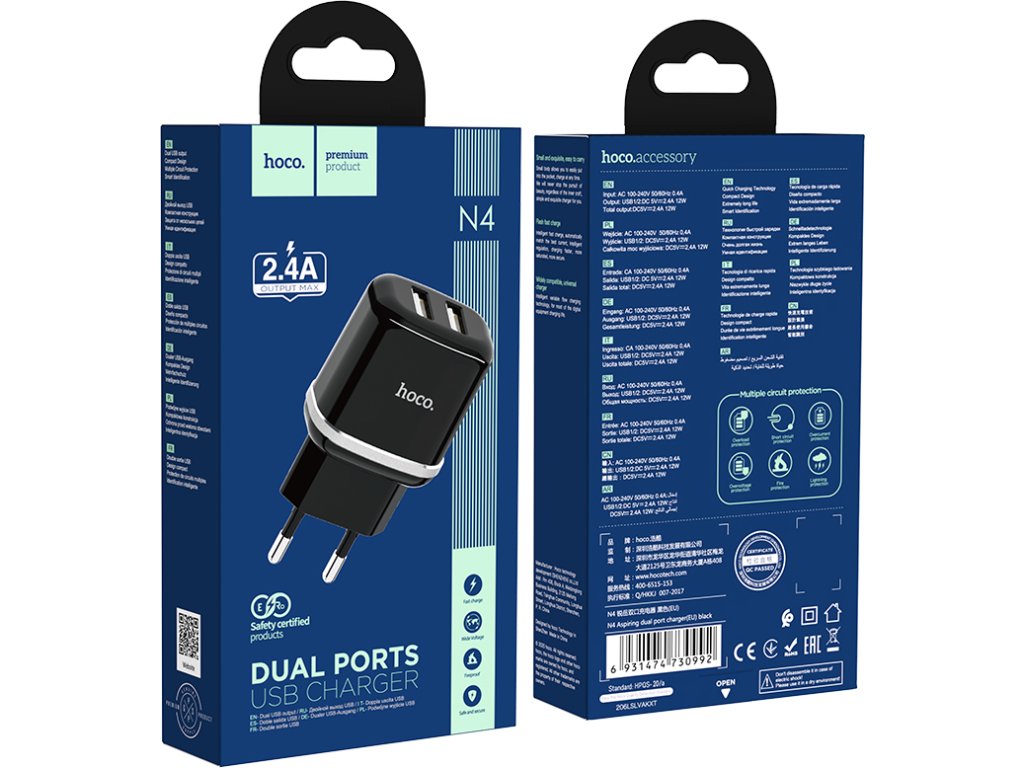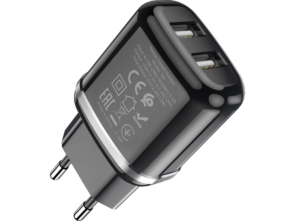 Nabíjecí AC adaptér pro iPhone a iPad Hoco N4 je určen pro nabíjení až 2 zařízení zároveň.