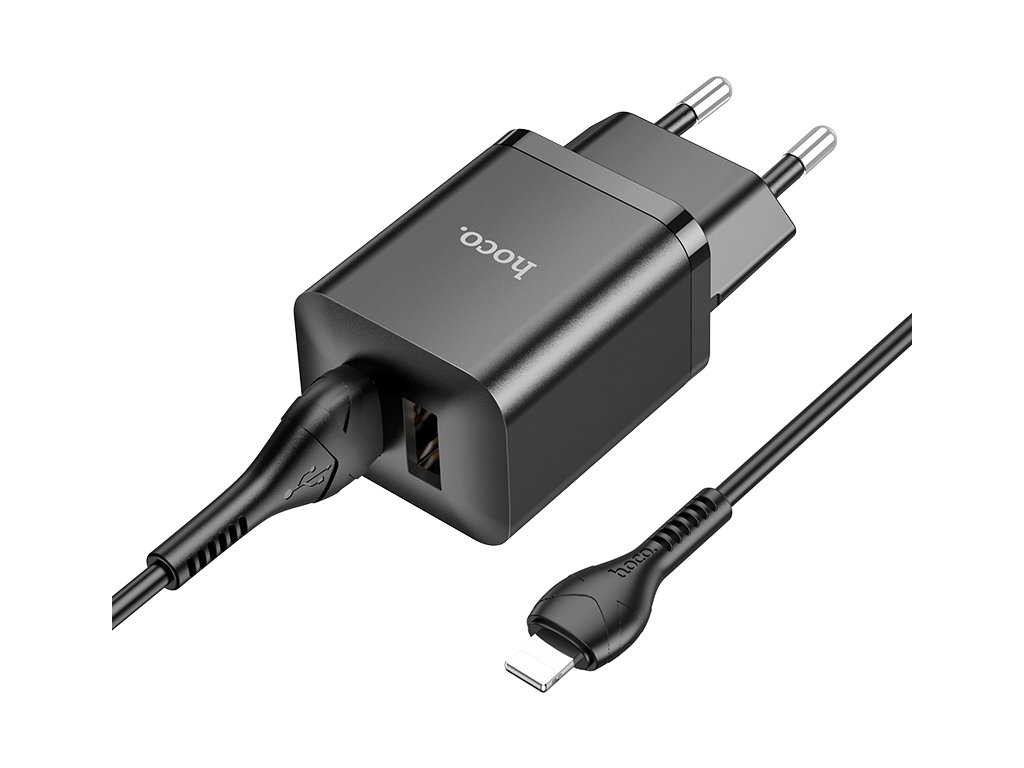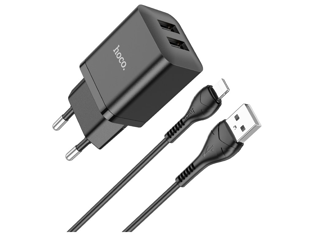 Nabíjecí USB adaptér do sítě - Hoco, N25 Maker Black + Lightning kabel
