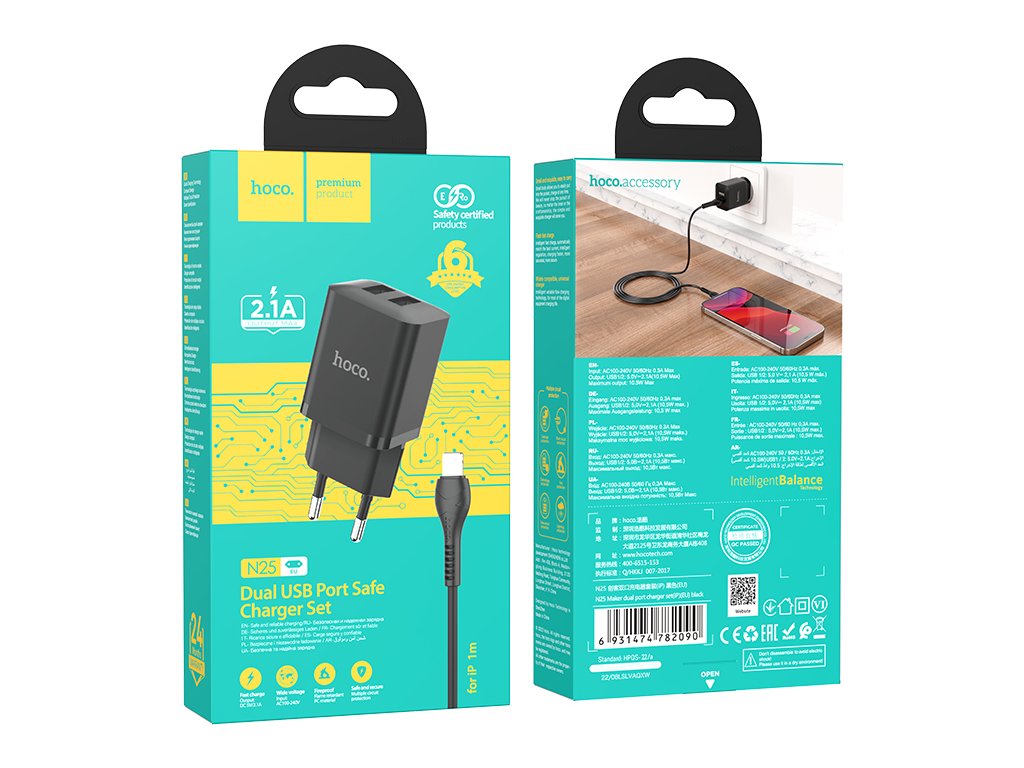 Nabíjecí USB adaptér do sítě Hoco N25 vám pomůže při nabíjení iPhonu a iPadu. Díky dvěma portům můžete nabíjet zároveň dvě zařízení. Brát ho lze všude s sebou na cestách nebo využívat pro napájení bezdrátových nabíječek, MagSafe nabíječek a dalších zařízeních.