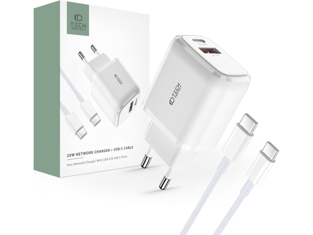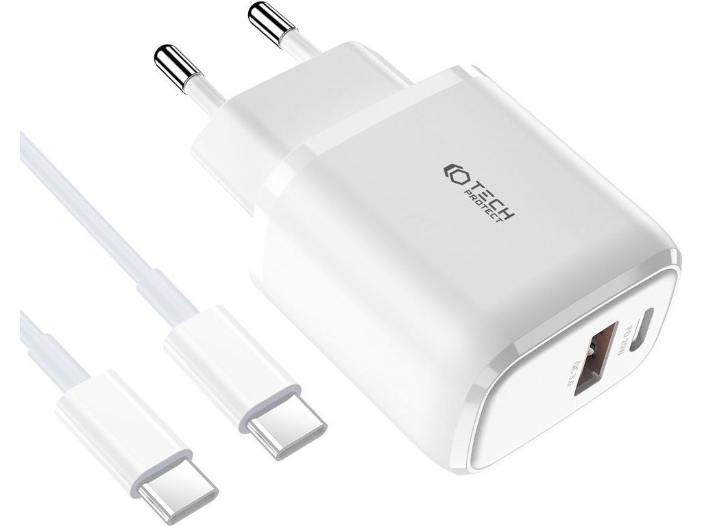Nabíjecí USB adaptér do sítě - Tech-Protect, PD20W/QC3.0 + USB-C kabel