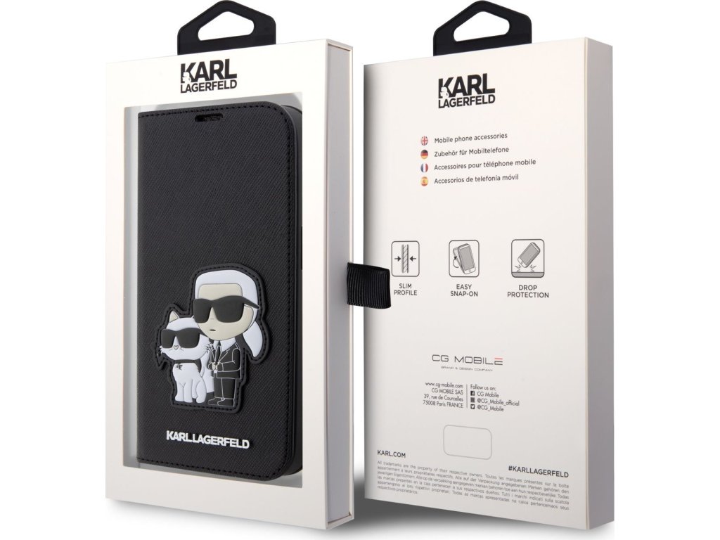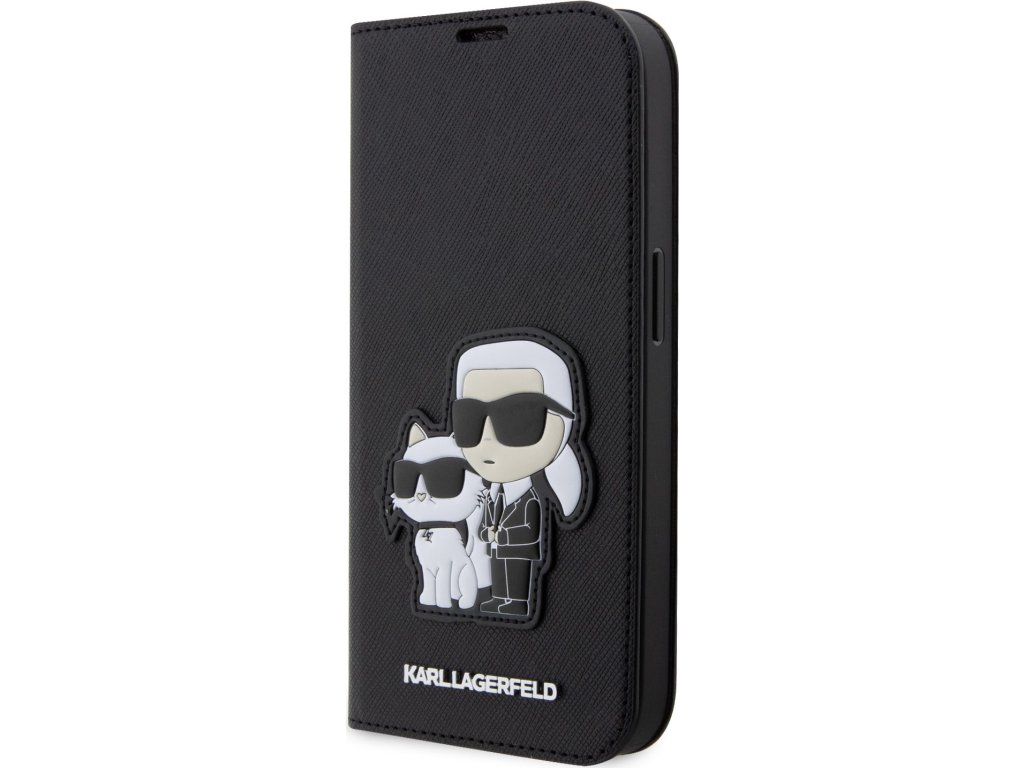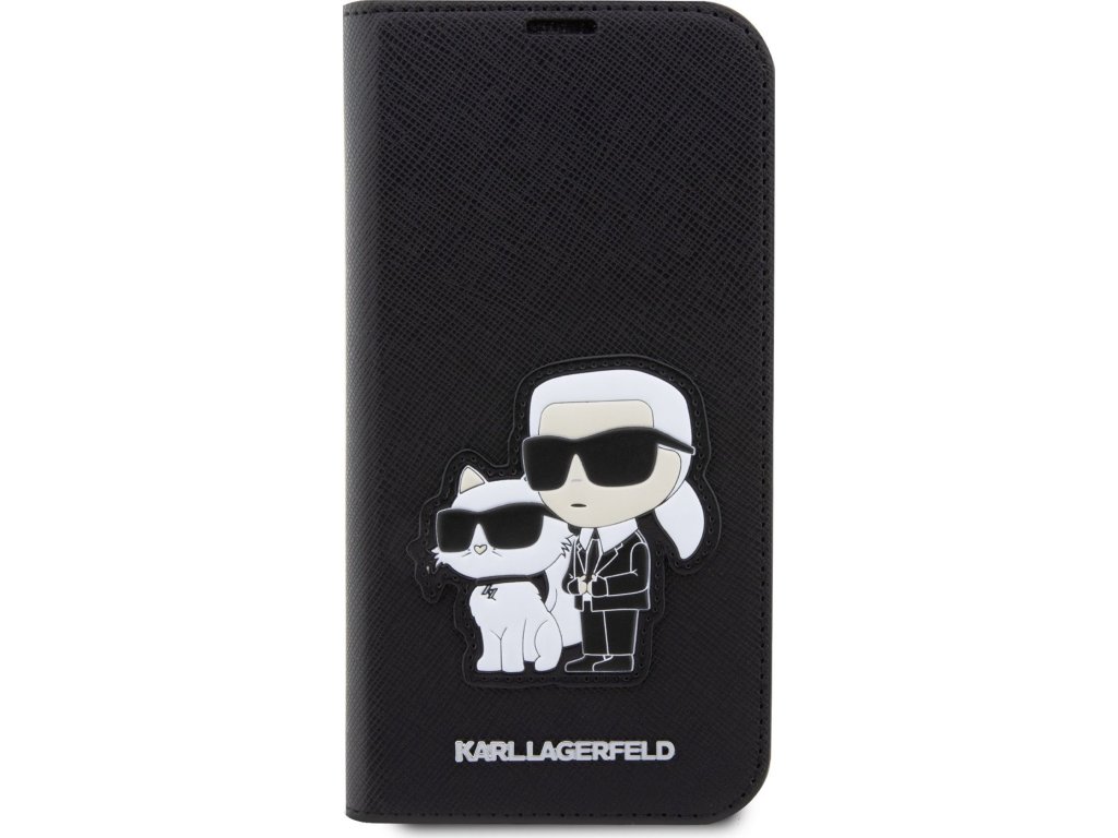 Ochranné pouzdro pro iPhone 13 Pro - Karl Lagerfeld, Saffiano Karl and Choupette NFT Book Black KLBKP13LSANKCPK