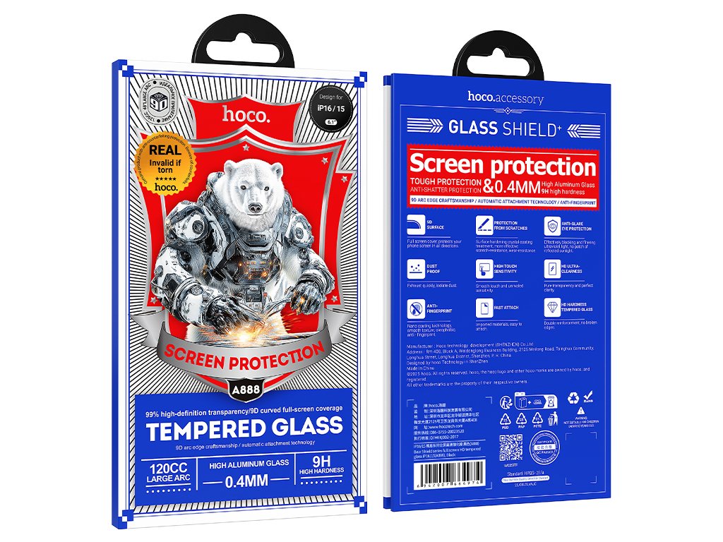 Ochranné tvrzené sklo na iPhone 15 / 16 - Hoco, Bear Shield