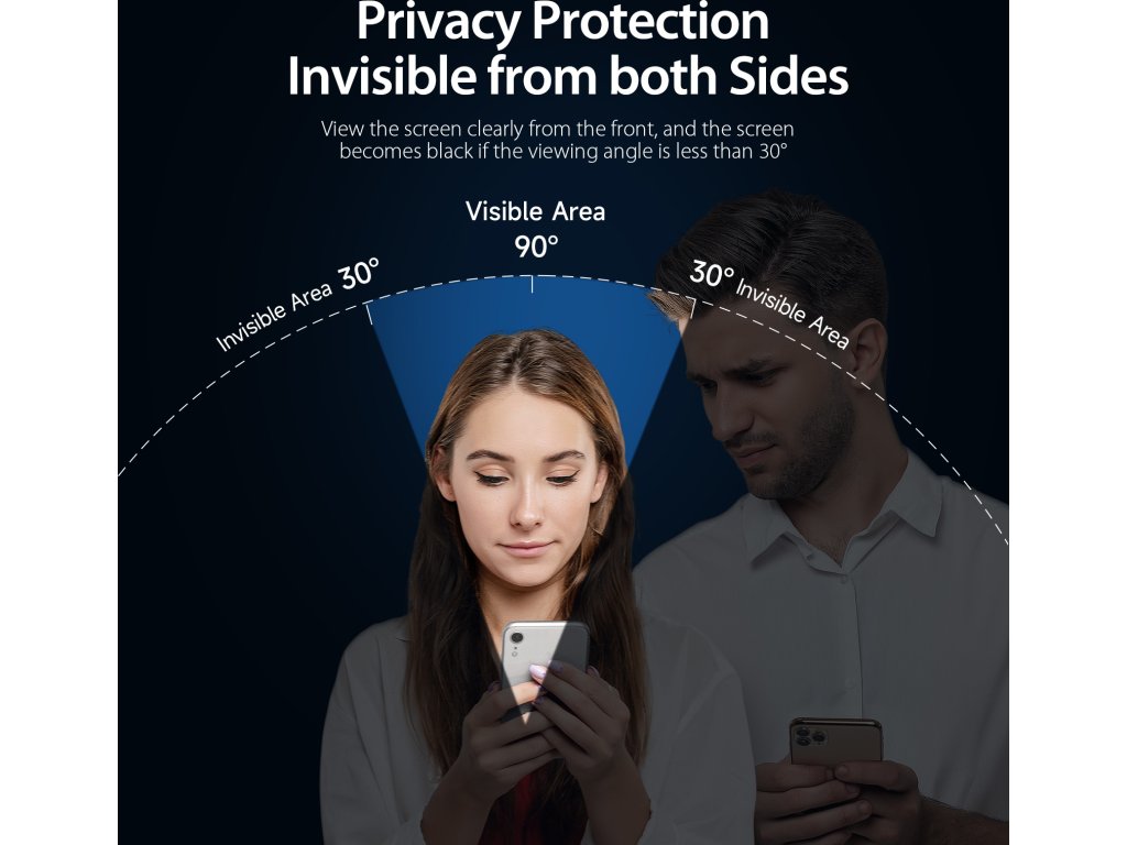 Ochranné sklo na iPhone je obdařeno šikovnou vychytávkou v podobě Privacy ochrany. Ta funguje ve všech směrech a abyste viděli na displej, je potřeba se na telefon dívat zpříma. Jakmile se někdo bude dívat ze strany nebo třeba shora, uvidí jen černou obrazovku.