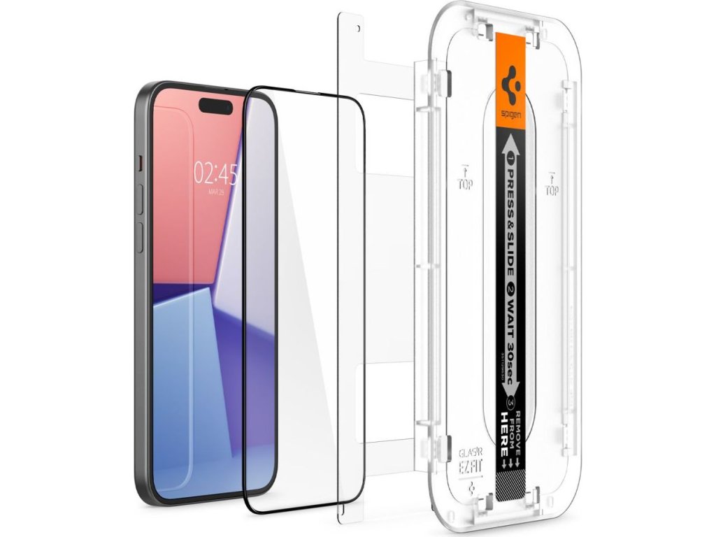 Ochranné tvrzené sklo na iPhone 15 PLUS - Spigen, Glas.tR EZ Fit (1ks s aplikátorem)