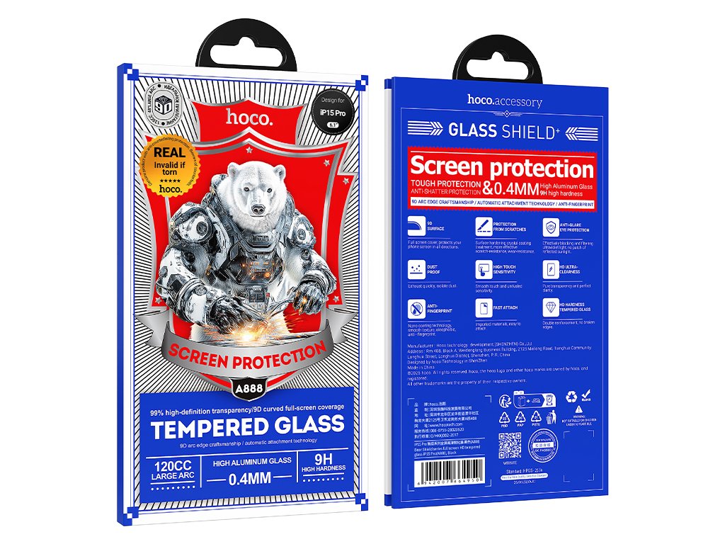 Ochranné tvrzené sklo na iPhone 15 Pro - Hoco, Bear Shield