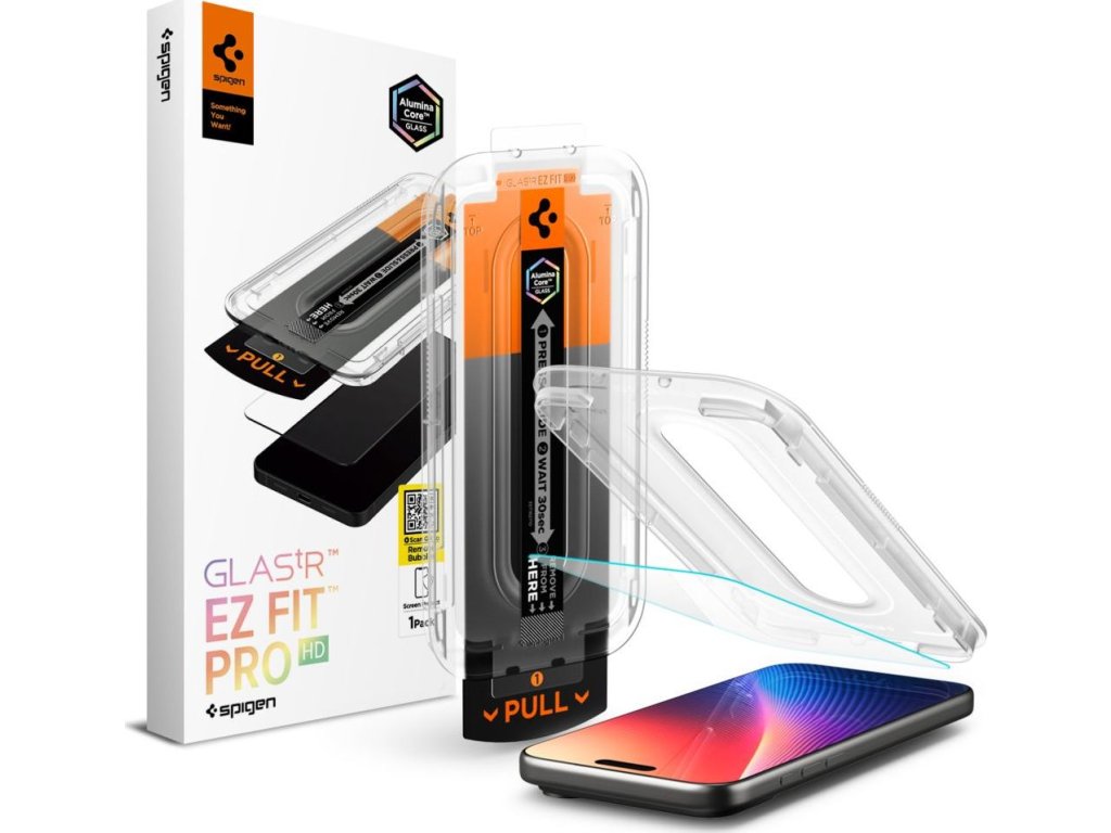 Ochranné tvrzené sklo na iPhone 17 / 17 Pro / 16 Pro - Spigen, Glas.tR EZ Fit (1ks s aplikátorem)