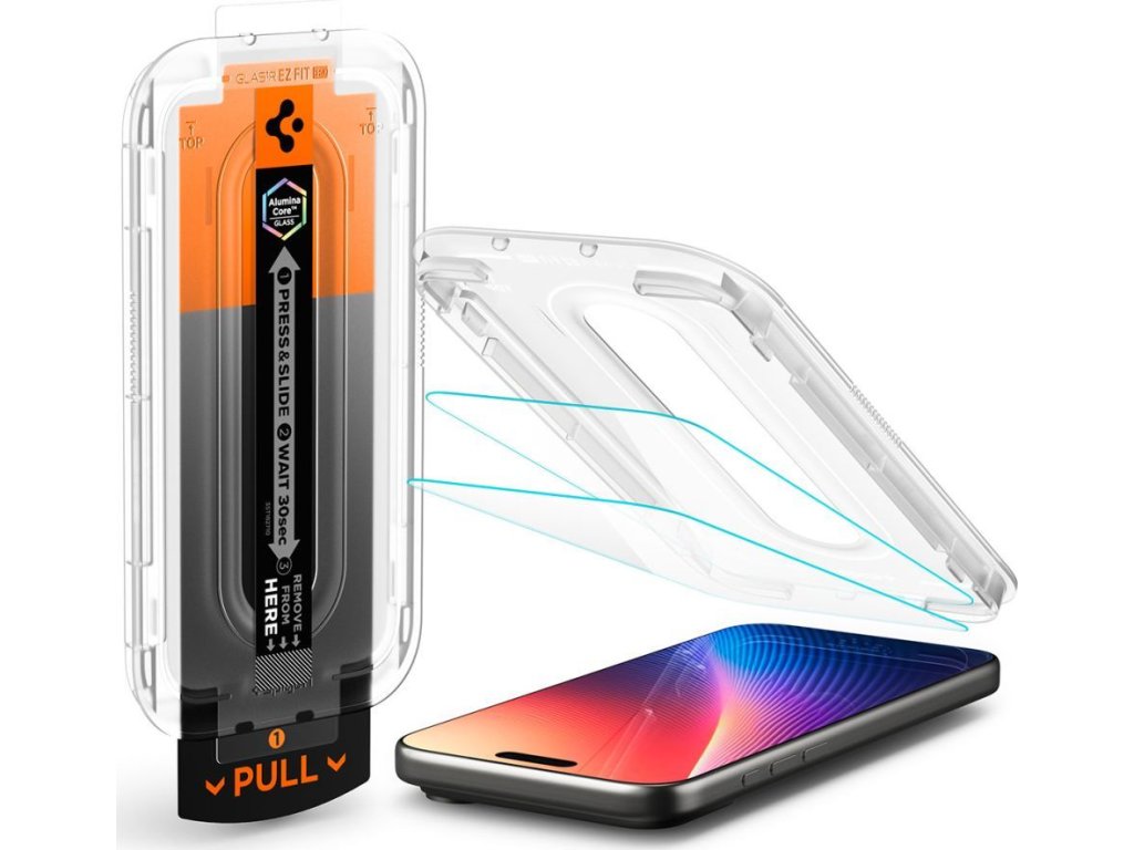 Ochranné tvrzené sklo na iPhone 17 Pro MAX / 16 Pro MAX - Spigen, Glas.tR EZ Fit (1ks s aplikátorem)