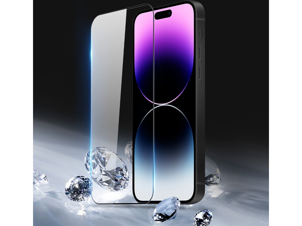 Ochranné tvrzené sklo pro iPhone 14 Pro, chrání celý displej od kraje ke kraji.