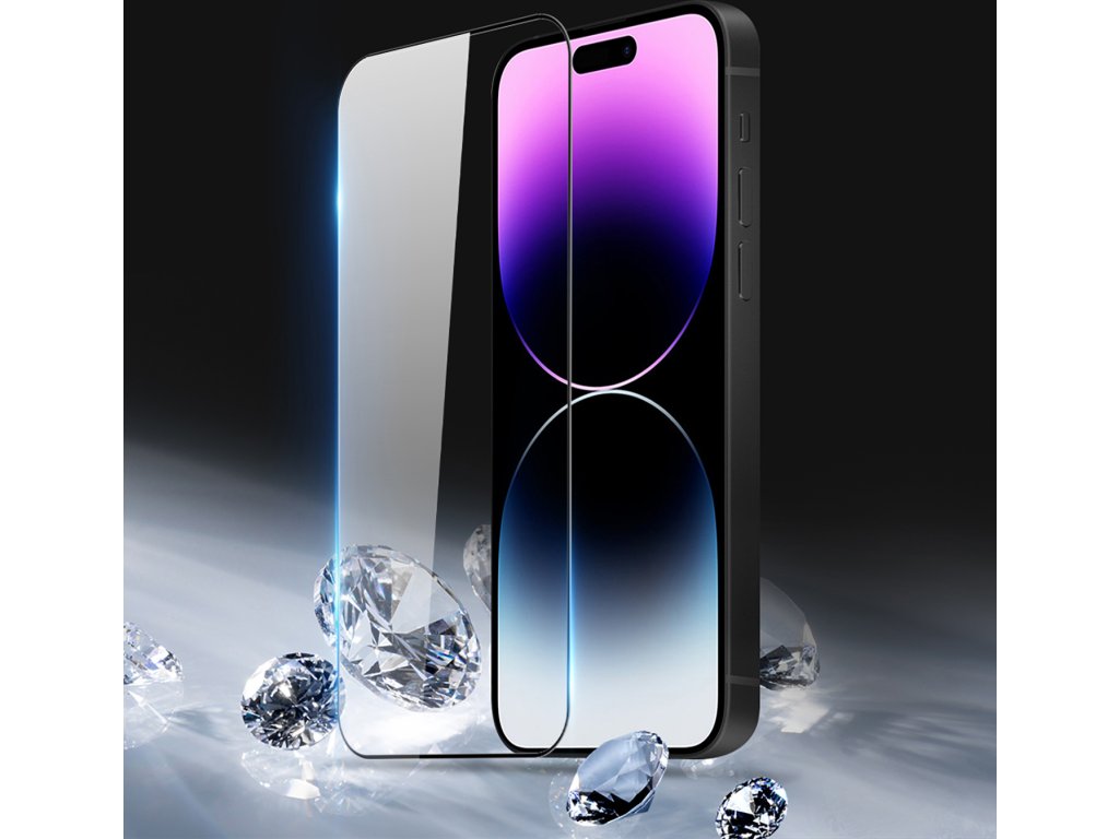 Ochranné tvrzené sklo pro iPhone 14 Pro MAX, chrání celý displej od kraje ke kraji.
