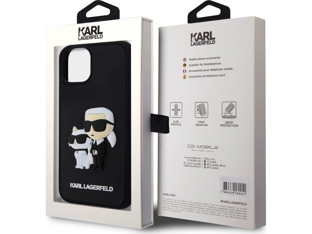 Ochranný kryt na iPhone 13 - Karl Lagerfeld, 3D Rubber Karl and Choupette Black KLHCP13M3DRKCNK