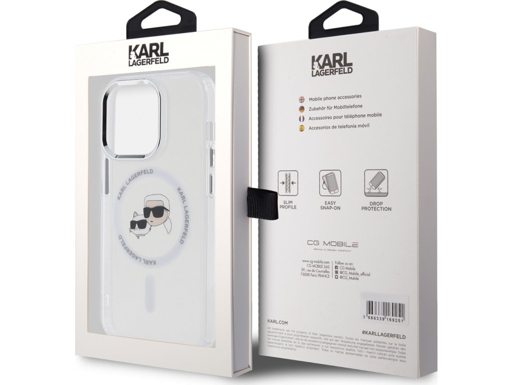 Ochranný kryt na iPhone 13 Pro - Karl Lagerfeld, IML K&CH Heads MagSafe Transparent KLHMP13LHLSKCH