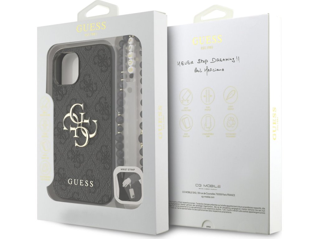 Ochranný kryt na iPhone 15 - Guess, 4G Metal Logo Strap Black GUHCP15SP4GMGSK