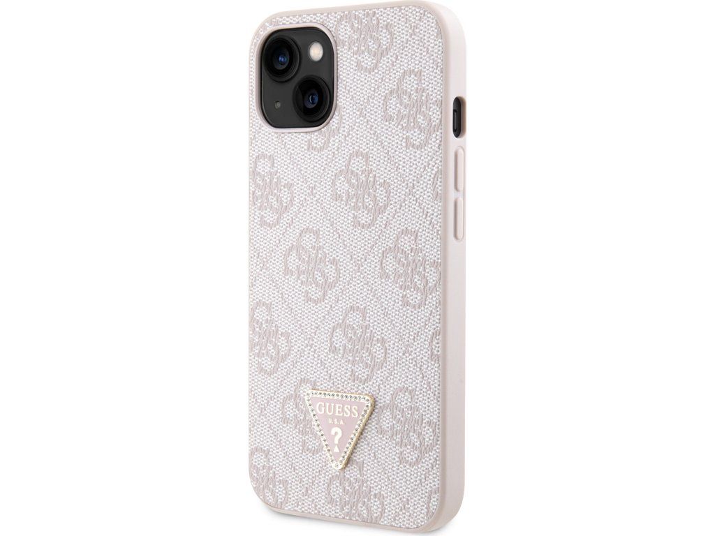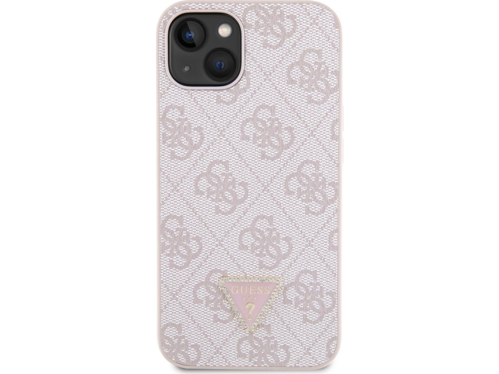 Ochranný kryt na iPhone 15 - Guess, 4G Strass Triangle Metal Logo Pink GUHCP15SP4TDPP
