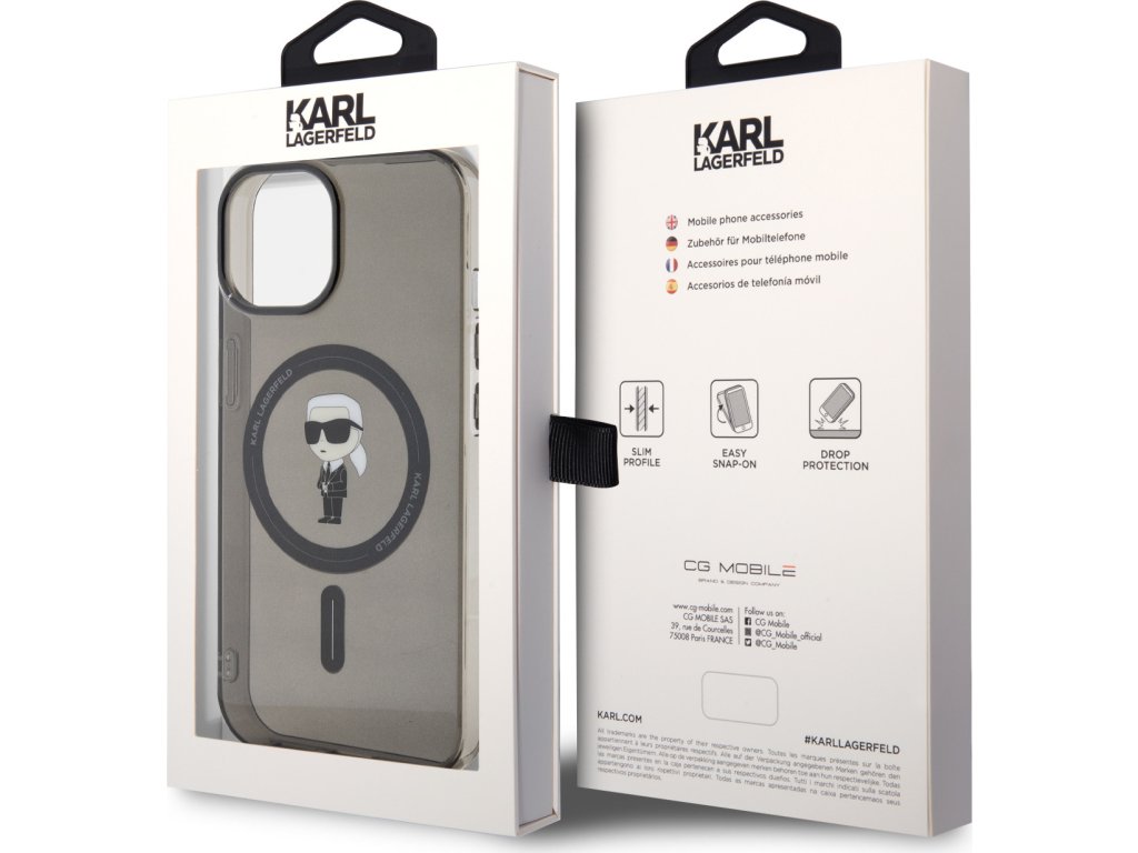 Ochranný kryt na iPhone 15 - Karl Lagerfeld, IML Ikonik MagSafe Black KLHMP15SHFCKNOK