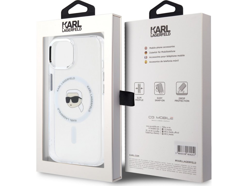 Ochranný kryt na iPhone 15 - Karl Lagerfeld, IML Karl Head MagSafe Transparent KLHMP15SHLSKIH