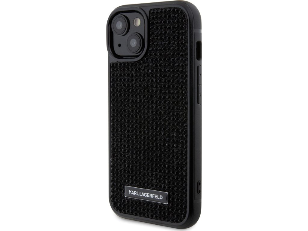 Ochranný kryt na iPhone 15 - Karl Lagerfeld, Rhinestone Plate Metal Logo Black KLHCP15SHDSPLK