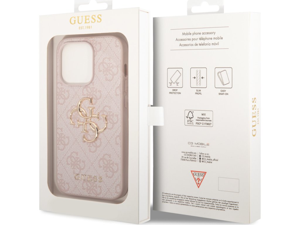 Ochranný kryt na iPhone 15 Pro - Guess, 4G Metal Logo Pink GUHCP15L4GMGPI