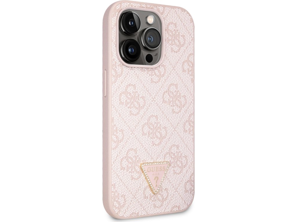 Ochranný kryt na iPhone 15 Pro - Guess, 4G Strass Triangle Metal Logo Pink GUHCP15LP4TDPP