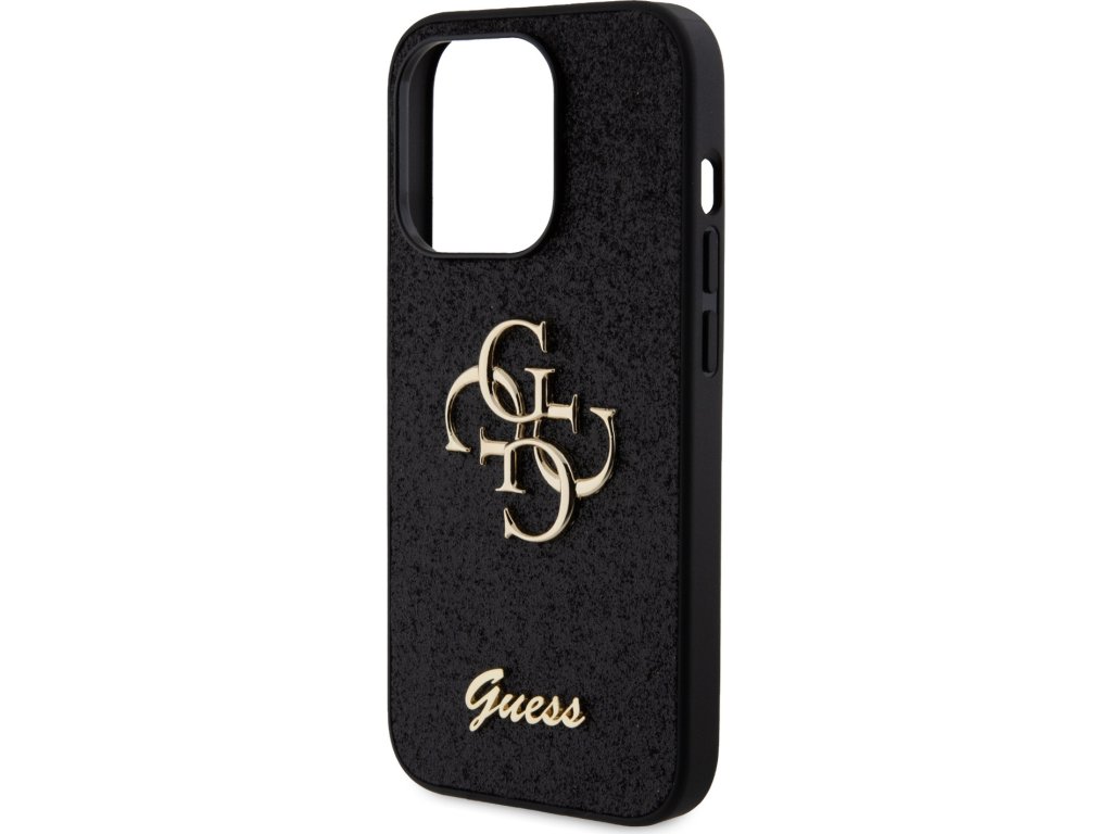 Ochranný kryt na iPhone 15 Pro - Guess, Fixed Glitter 4G Metal Logo Black GUHCP15LHG4SGK