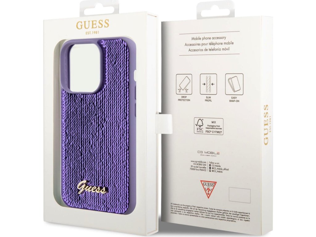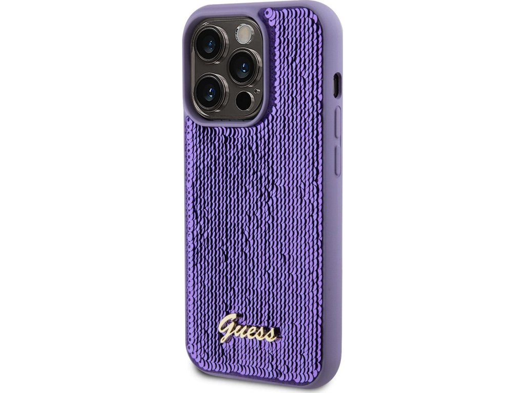 Ochranný kryt na iPhone 15 Pro - Guess, Sequin Script Logo Purple GUHCP15LPSFDGSU