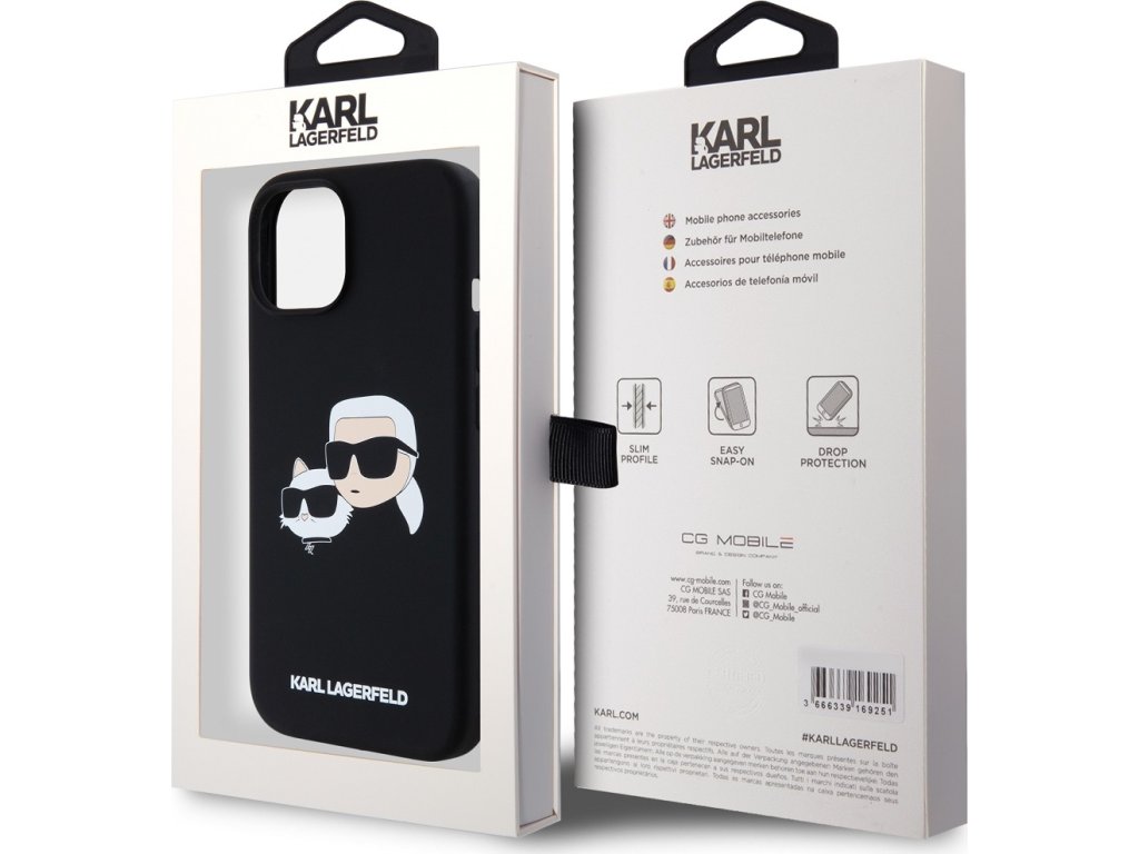 Ochranný kryt na iPhone 15 Pro - Karl Lagerfeld, Double Heads MagSafe Black KLHMP15LSKCHPPLK