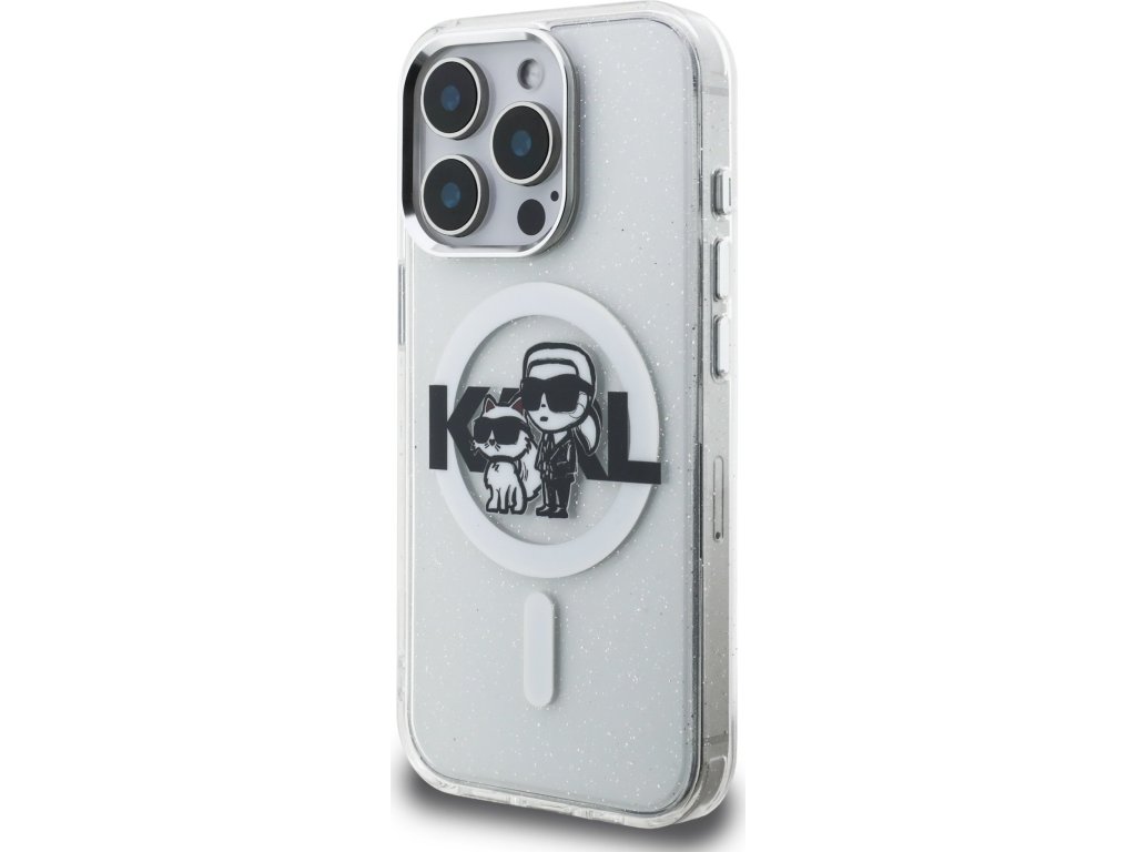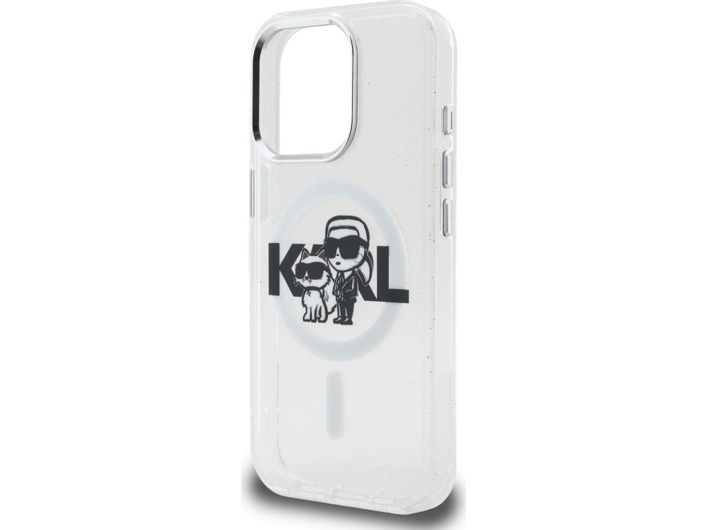 Ochranný kryt na iPhone 15 Pro - Karl Lagerfeld, IML Glitter Sketch MagSafe Transparent KLHMP15LHGKCGKBT