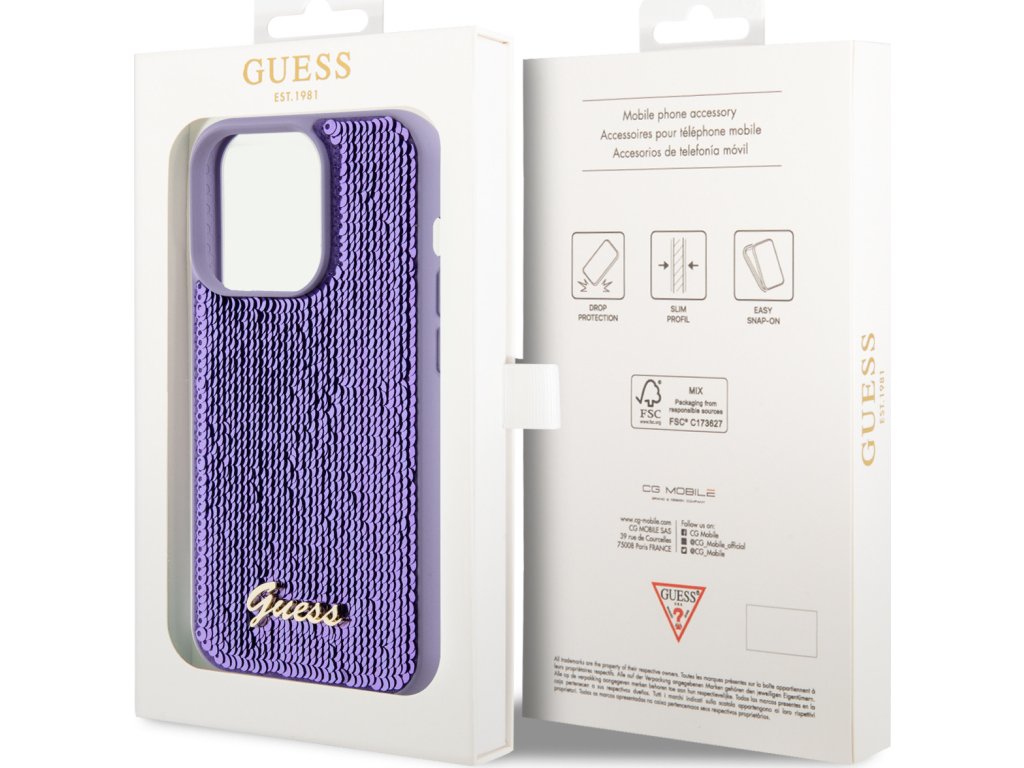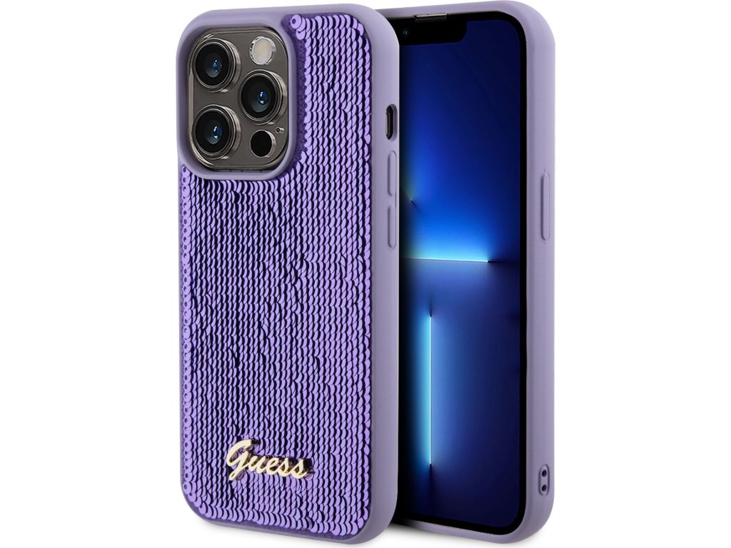 Ochranný kryt na iPhone 15 Pro MAX - Guess, Sequin Script Logo Purple GUHCP15XPSFDGSU