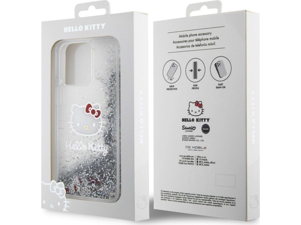 Ochranný kryt na iPhone 15 Pro MAX - Hello Kitty, Liquid Glitter Electroplating Head Logo Transparent HKHCP15XLIKHET