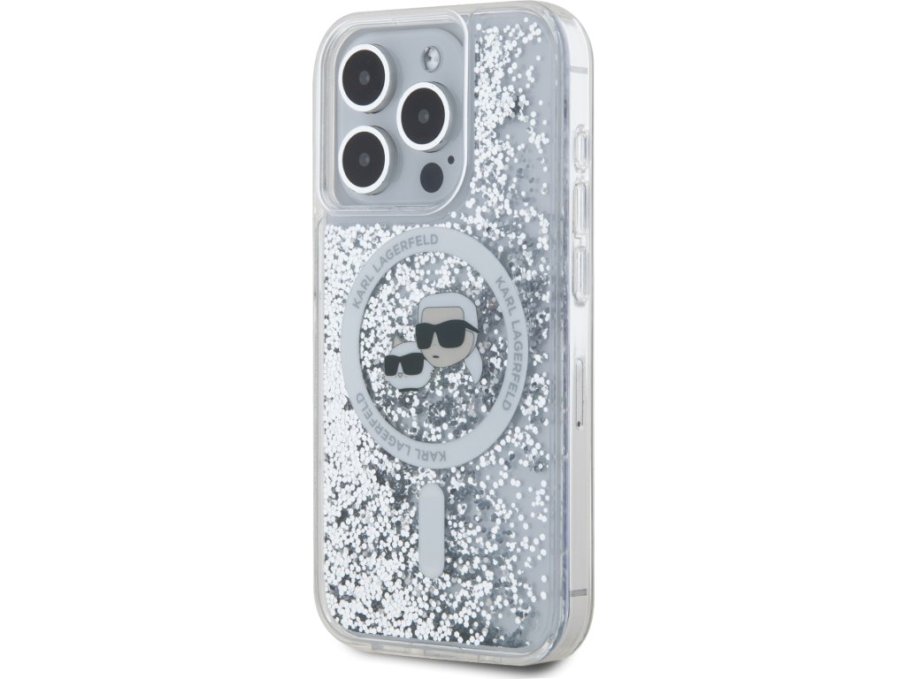 Ochranný kryt na iPhone 15 Pro MAX - Karl Lagerfeld, Liquid Glitter Karl and Choupette Heads MagSafe Transparent KLHMP15XLGKCSGH