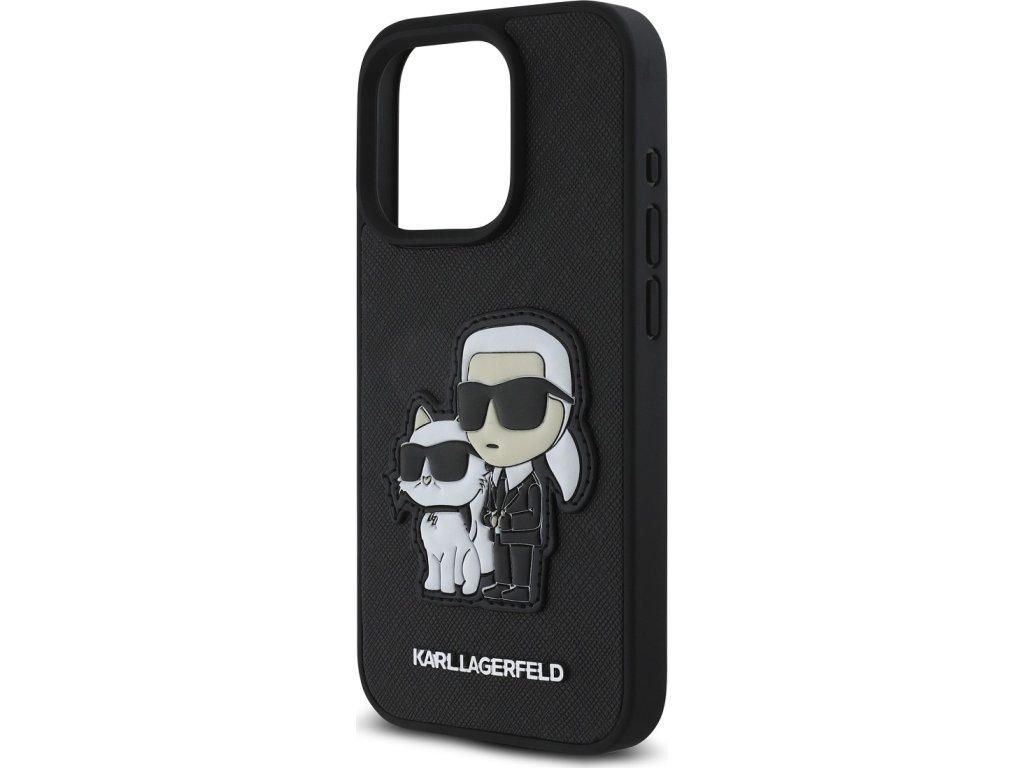 Ochranný kryt na iPhone 15 Pro MAX - Karl Lagerfeld, Saffiano Karl and Choupette Black KLHCP15XSANKCPK