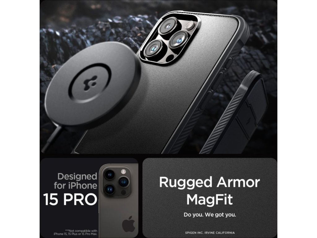 Ochranný kryt na iPhone 15 Pro - Spigen, Rugged Armor MagSafe Black