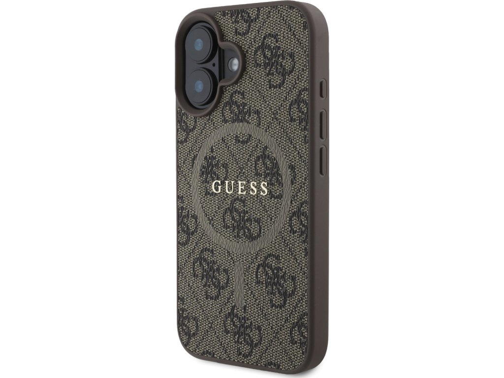 Ochranný kryt na iPhone 16 - Guess, 4G Colored Ring MagSafe Brown GUHMP16SG4GFRW