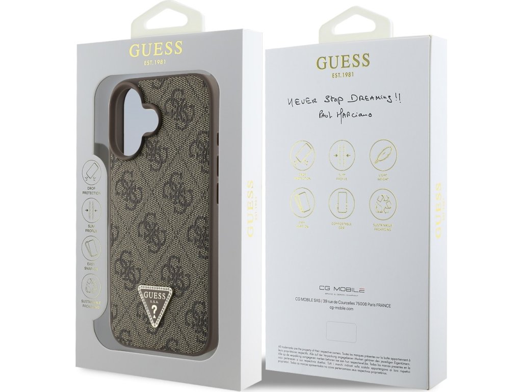 Ochranný kryt na iPhone 16 - Guess, 4G Strass Triangle Brown GUHCP16SP4TDPW