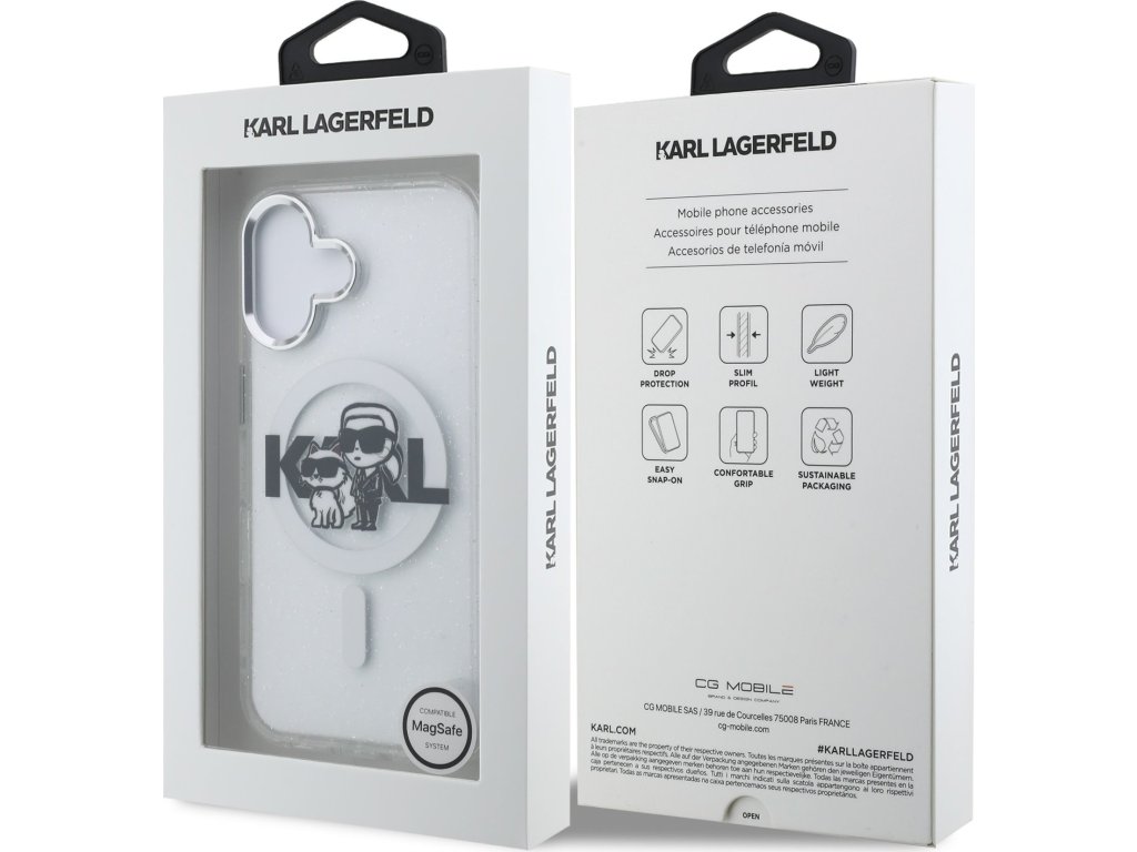 Ochranný kryt na iPhone 16 - Karl Lagerfeld, IML Glitter Sketch MagSafe Transparent KLHMP16SHGKCGKBT