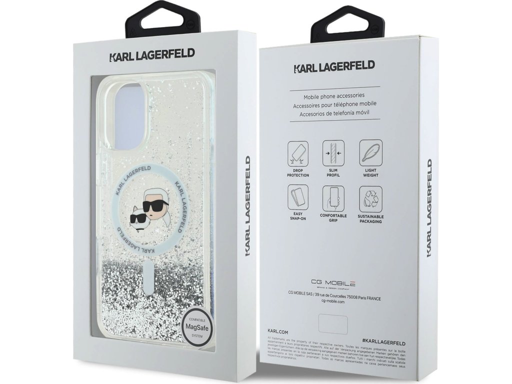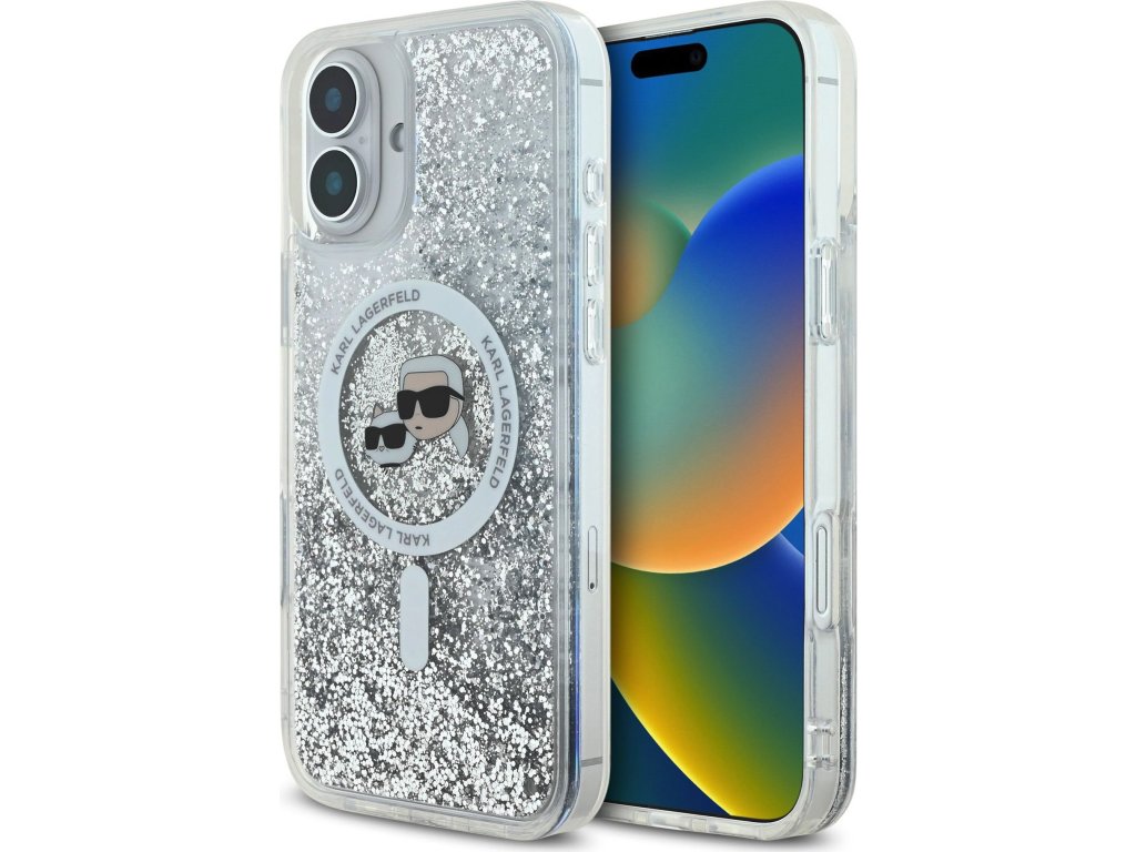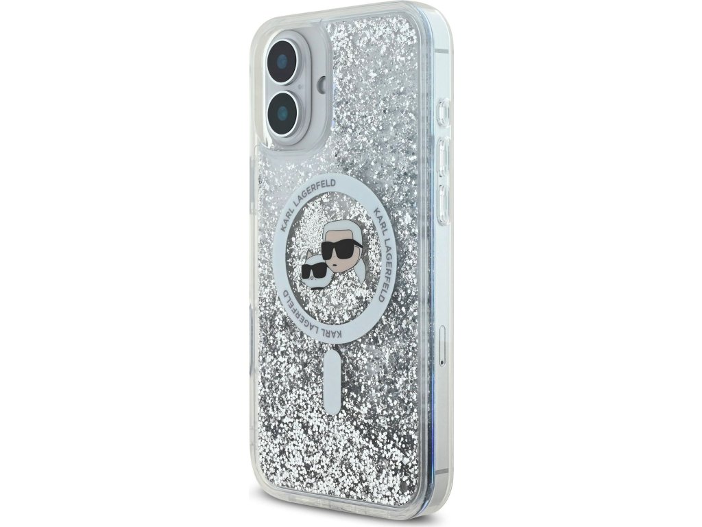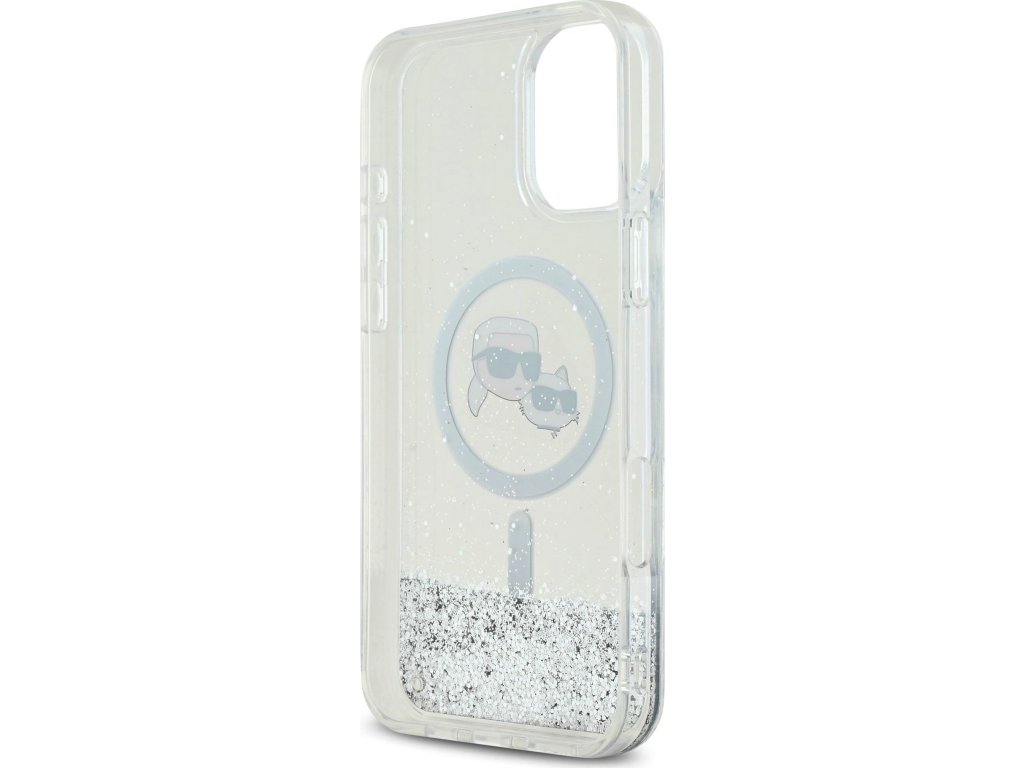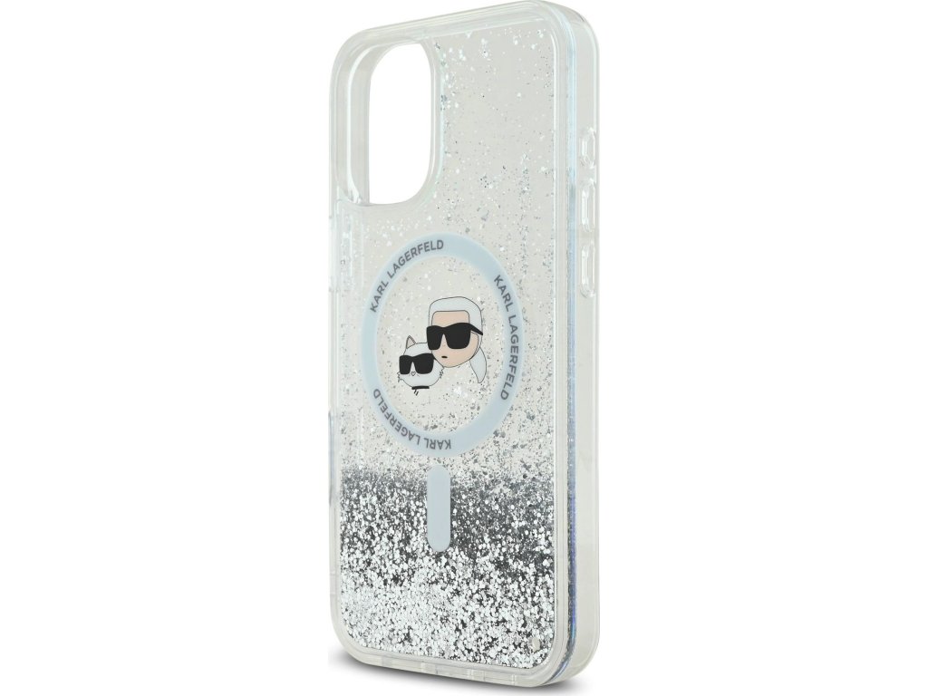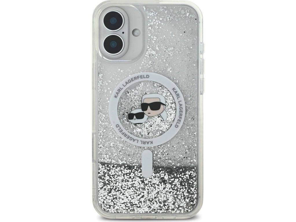 Ochranný kryt na iPhone 16 - Karl Lagerfeld, Liquid Glitter Karl and Choupette Heads MagSafe Transparent KLHMP16SLGKCSGH