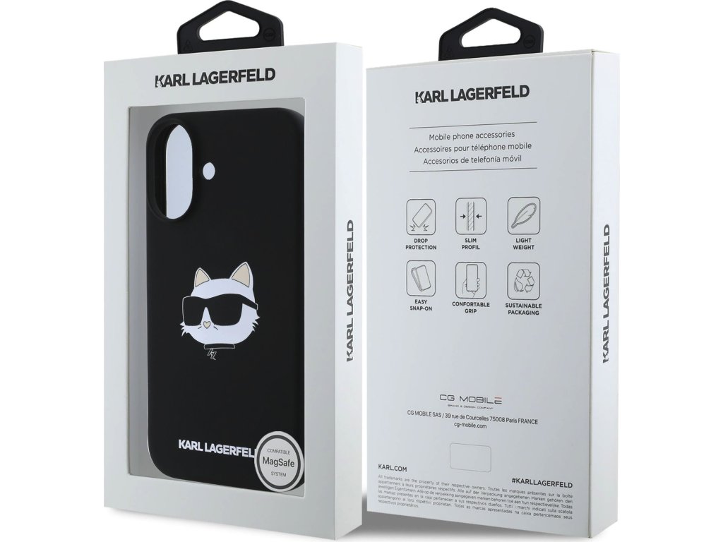 Ochranný kryt na iPhone 16 - Karl Lagerfeld, Silicone Choupette Head MagSafe Black KLHMP16SSCHPPLK