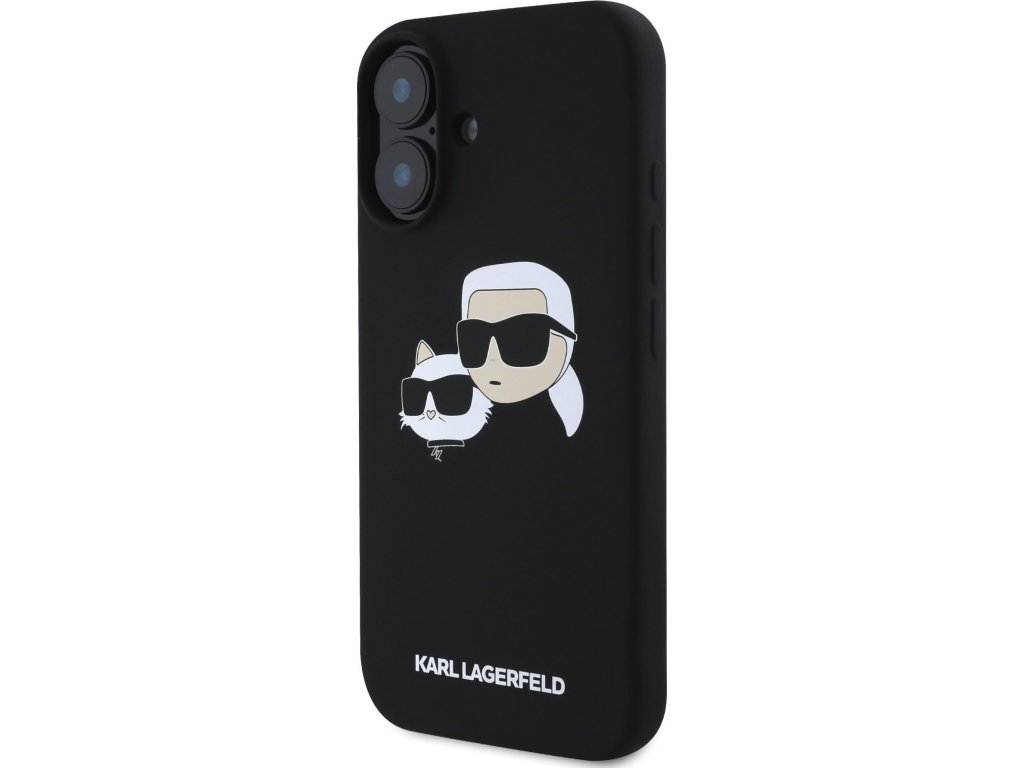 Ochranný kryt na iPhone 16 - Karl Lagerfeld, Silicone Double Heads MagSafe Black KLHMP16SSKCHPPLK